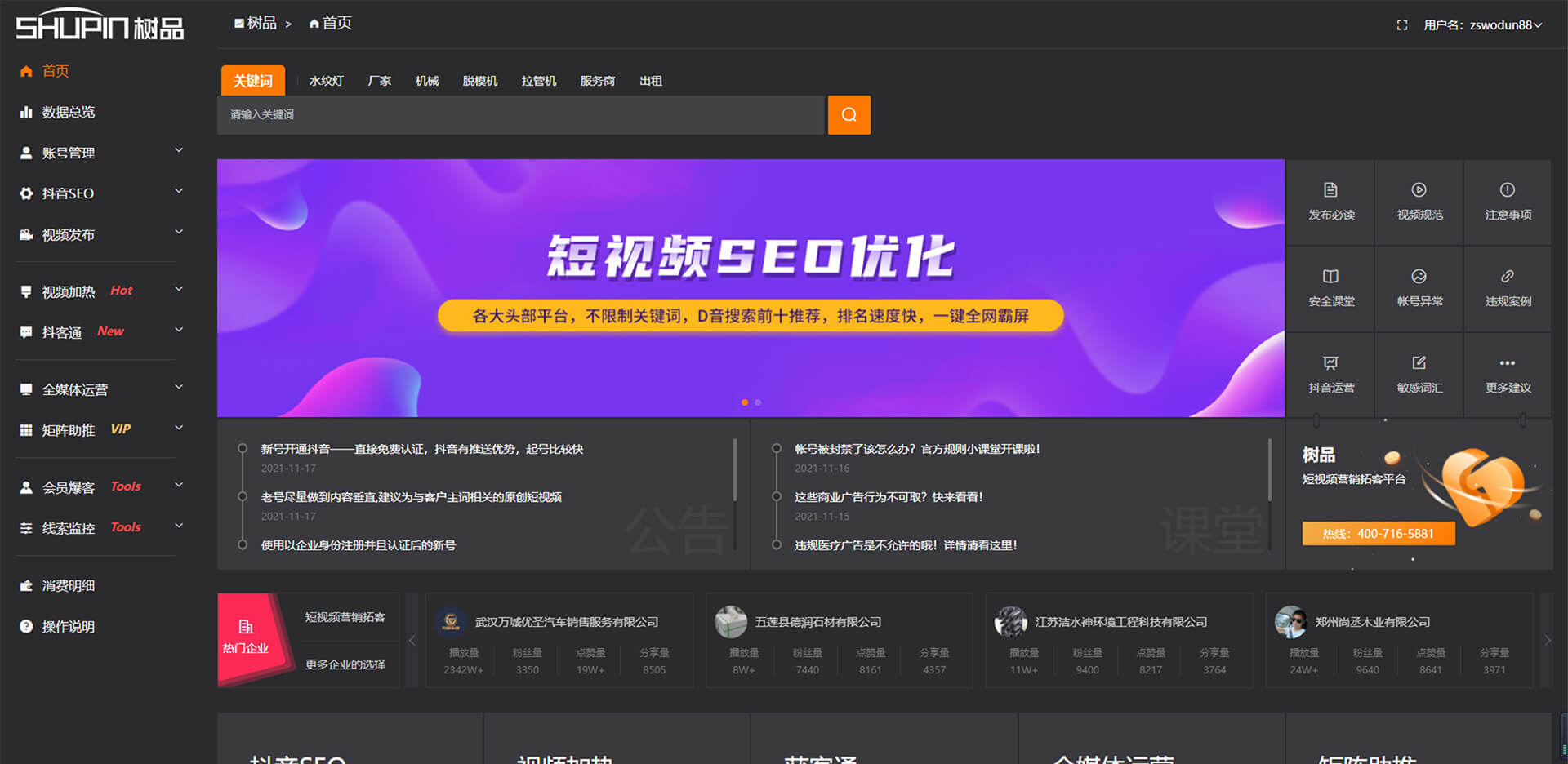 樹品是由南方網(wǎng)通自主研發(fā)的基于企業(yè)的短視頻矩陣及內(nèi)容進(jìn)行全面的AI短視頻生態(tài)場(chǎng)景營(yíng)銷。